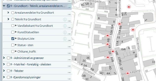 Description: Laget FAG.KULTUR.KunstStatueStenListe er opstået ved at oprette et JOIN mellem laget Laget FAG.KULTUR.KunstStatueSten og Excel-regnearket fra Kultur og Fritid med registreringen af alle skulpturer i kommunen. Kun fanebladet Liste er anvendt. Koblingen er sket ved at indtaste OBJECTID fra FAG.KULTUR.KunstStatueSten i Liste og bruge denne. I NetGIS er laget publiceret med navnet SkulpturListe (via mapservice Ekstern/NG_Kort).